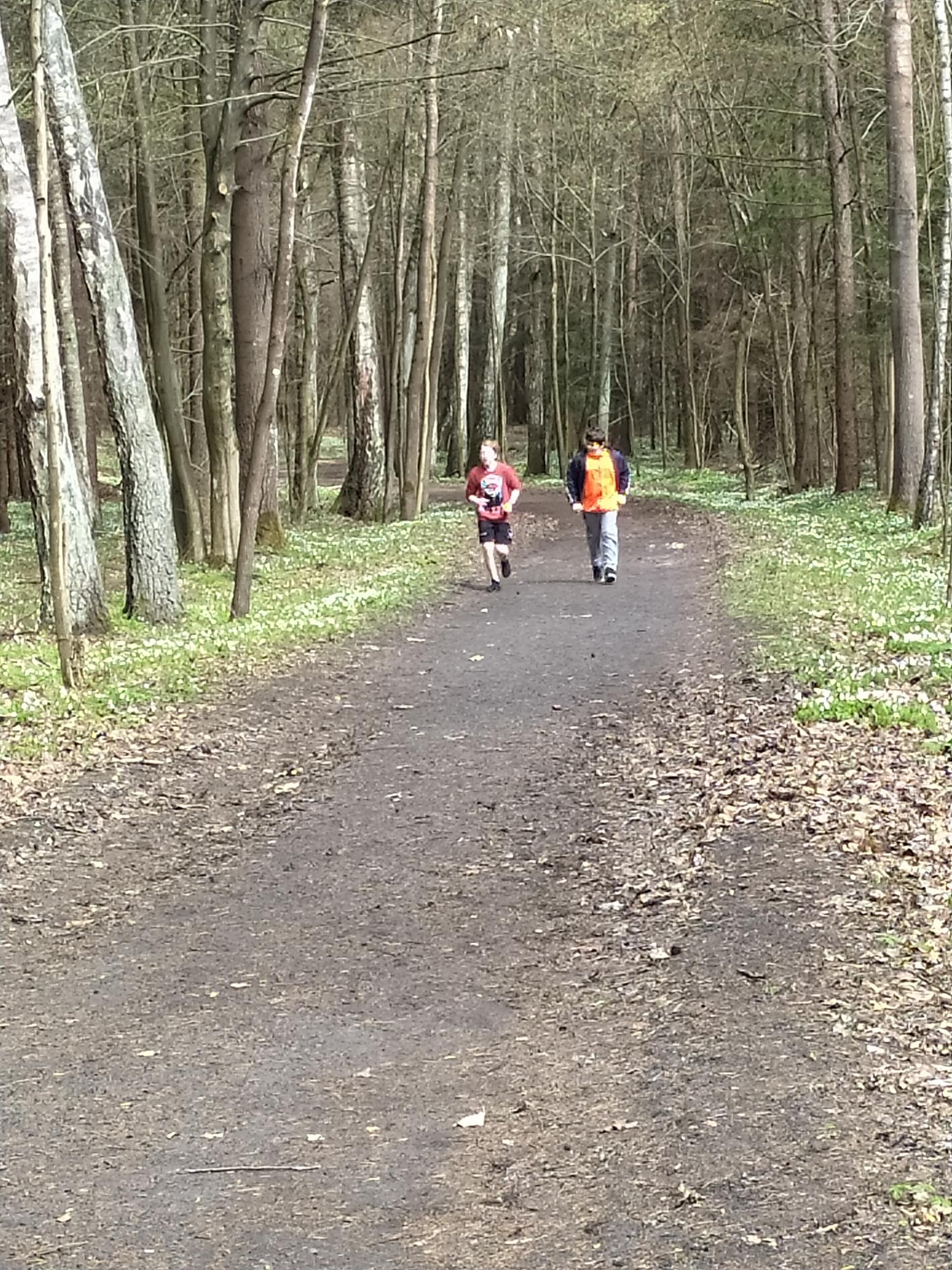 Na życzenie samych wychowanków wybraliśmy się na długi, piętnasto kilometrowy spacer. Nie zabrakło pięknych widoków budzącej się do życia przyrody, przeprawy przez strumyk oraz licznych większych i mniejszych warmińskich górek. Tydzień później, wychowankowie zaproponowali zmagania w biegu na dystansie jednego kilometra. Grupa udowodniła, że z kondycją nie są w lesie….choć większość czasu spędziliśmy właśnie tam.