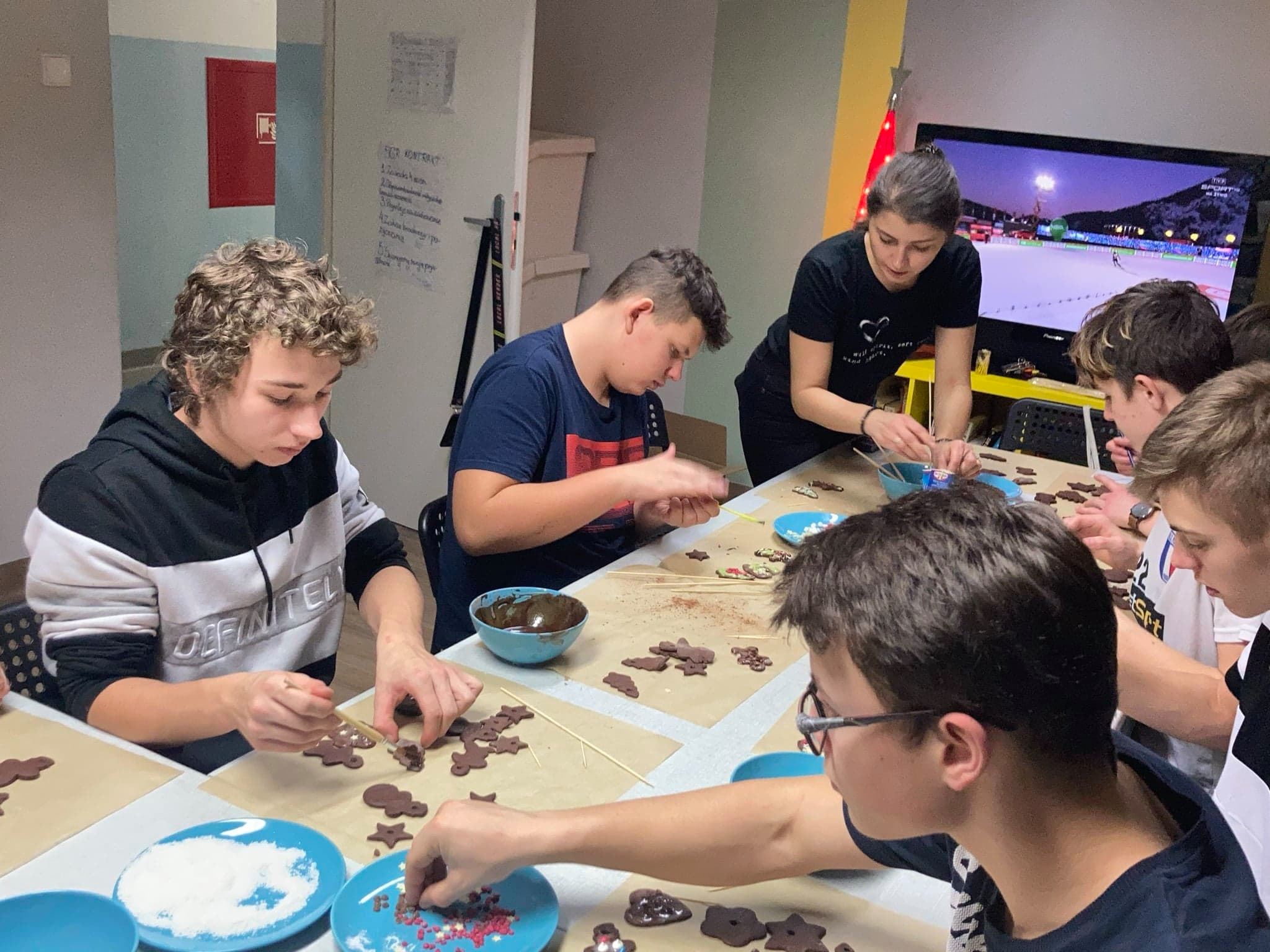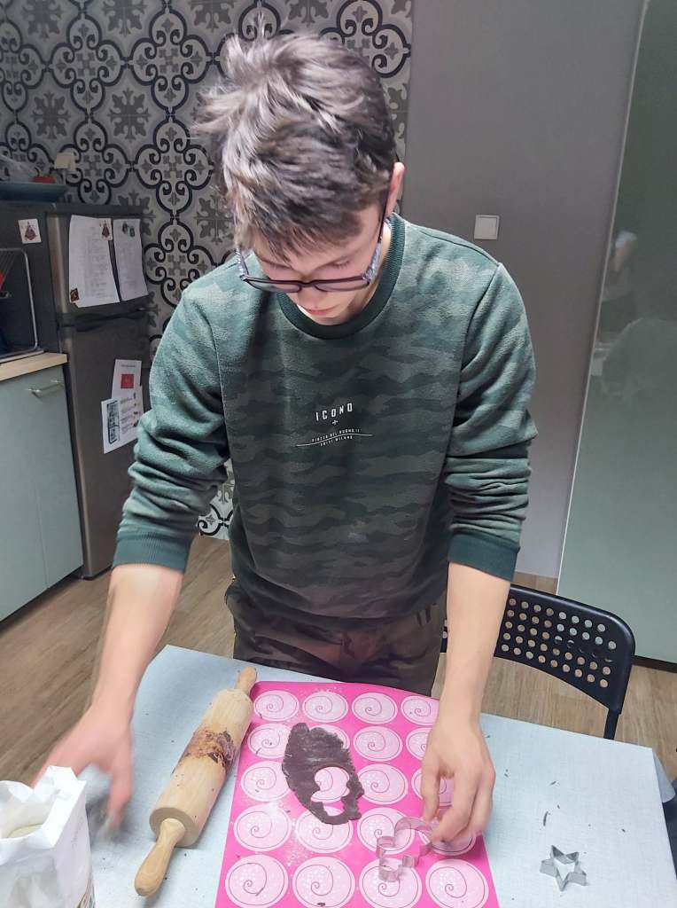 W tym roku grupa V przygotowała pyszne pierniki. Praca była podzielona na dwa etapy. Podczas pierwszego, tego trudniejszego, chłopcy wałkowali, wycinali i piekli pierniki. Jak się później okazało już wtedy „zniknęło” parę blach 😉 W następnym etapie przygotowali lukier i każdy miał szansę wykazać się kreatywnością podczas zdobienia. Efekty pracy można podziwiać na zdjęciach.