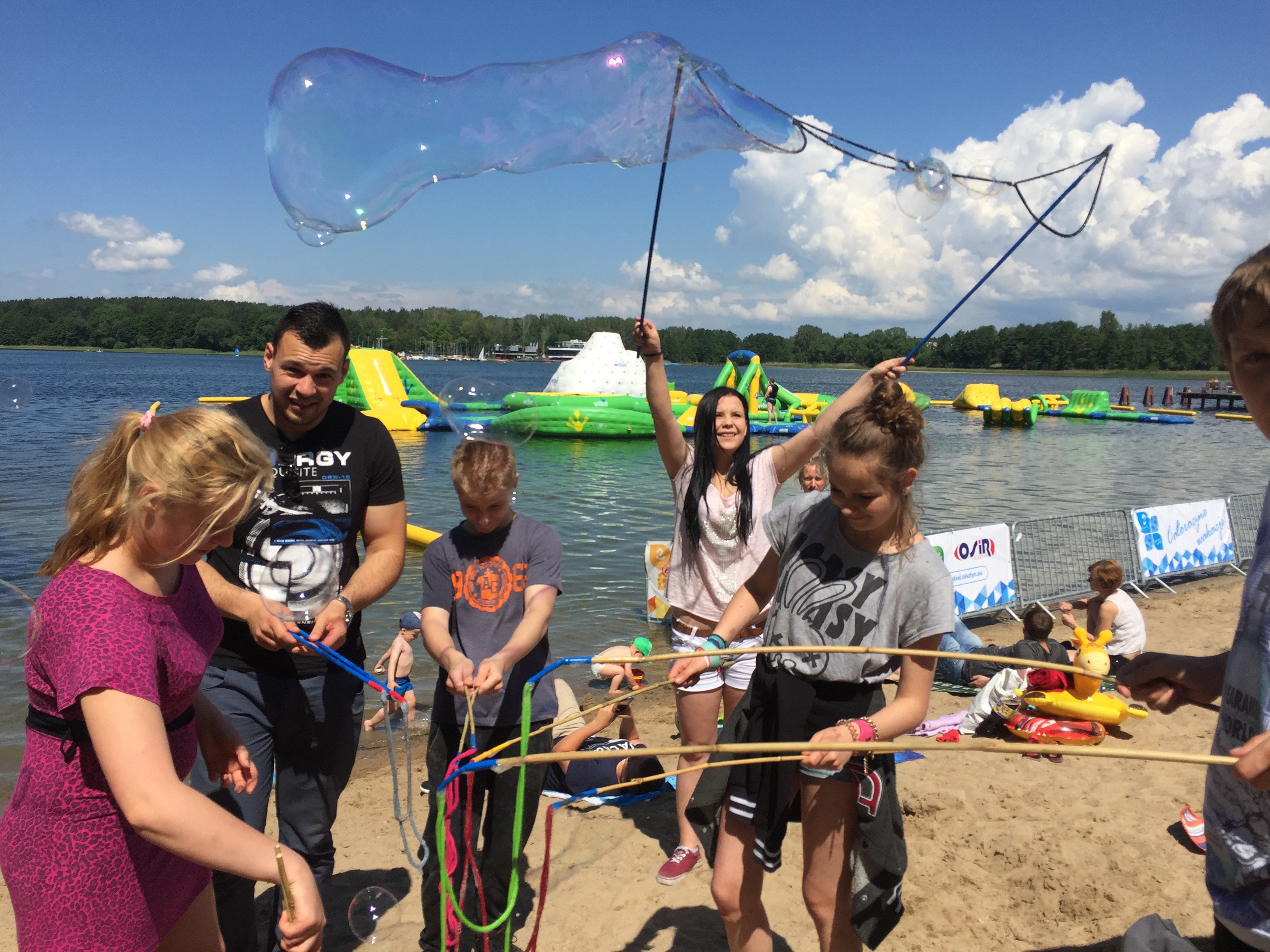 4 czerwca na Plaży Miejskiej nad jeziorem Ukiel w Olsztynie odbyła się trzecia edycja Festiwalu Baniek Mydlanych, w których brali udział nasi wychowankowie. Wszyscy chętnie i aktywnie puszczaliśmy ogromne, niezwykłe bańki – świetnie się bawiliśmy. Przy okazji niektórzy zamoczyli się w fontannie i jeziorze – mieliśmy niezły ubaw. Zdjęcia z Festiwalu umieściliśmy w zakładce „zdjęcia” 🙂