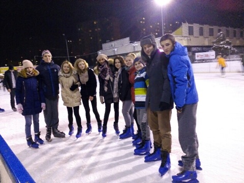 W piątkowy wieczór wspólnie wybraliśmy się na długi spacer po okolicy. Po drodze zaszliśmy zobaczyć jeżdżących na łyżwach na lodowisku. Było super 🙂